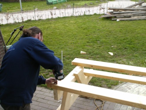 Wat hout over, maken we toch even een pick-nictafel van!!!